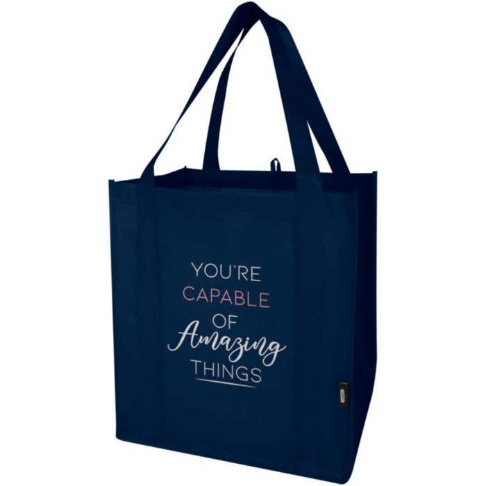Fabriqué en RPET non-tissé durable et résistant à la déchirure, le sac shopping Liberty recyclé certifié GRS est doté d'une planche de fond qui le rend polyvalent et solide. Le sac shopping est doté d'un grand compartiment principal et de poignées de 25 cm de long. Capacité : 29 litres. Capacité de charge maximale de 12 kg. Commandez maintenant !